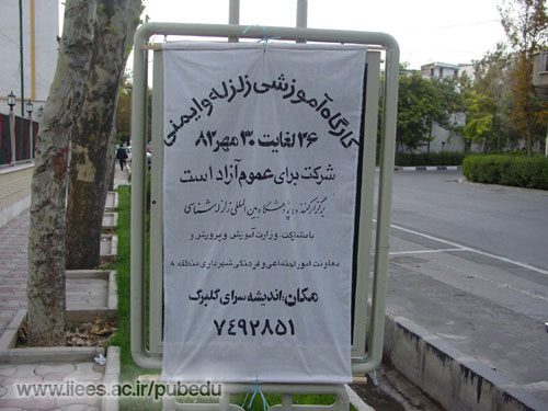 نهمین کارگاه آموزشی زلزله و ایمنی ، در تاریخ ۲۶ تا ۳۰ مهرماه ۱۳۸۲، به همت بخش آموزش همگانی پژوهشگاه و با مشارکت وزارت آموزش و پرورش و معاونت امور اجتماعی و فرهنگی شهرداری منطقه 8 تهران در اندیشه سرای گلبرگ برگزار شد.